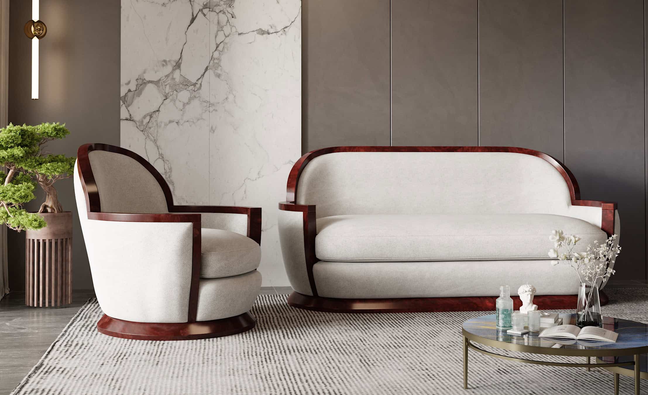 Our models featuring wooden trims and accents are crafted with high-quality veneers, meticulously fitted by the same artisans who restore vintage car paneling for prestigious brands like Rolls-Royce and Jaguar, ensuring unparalleled quality, sustainability, and refined finishes in a curated selection of Mahogany, Elm, and Walnut Burr.