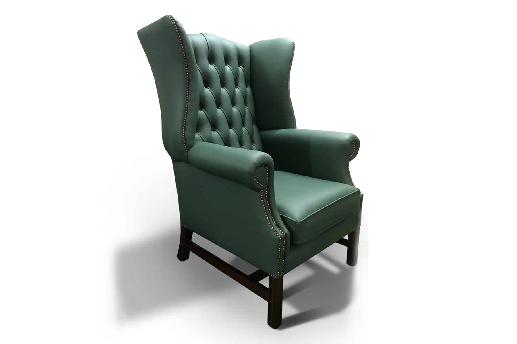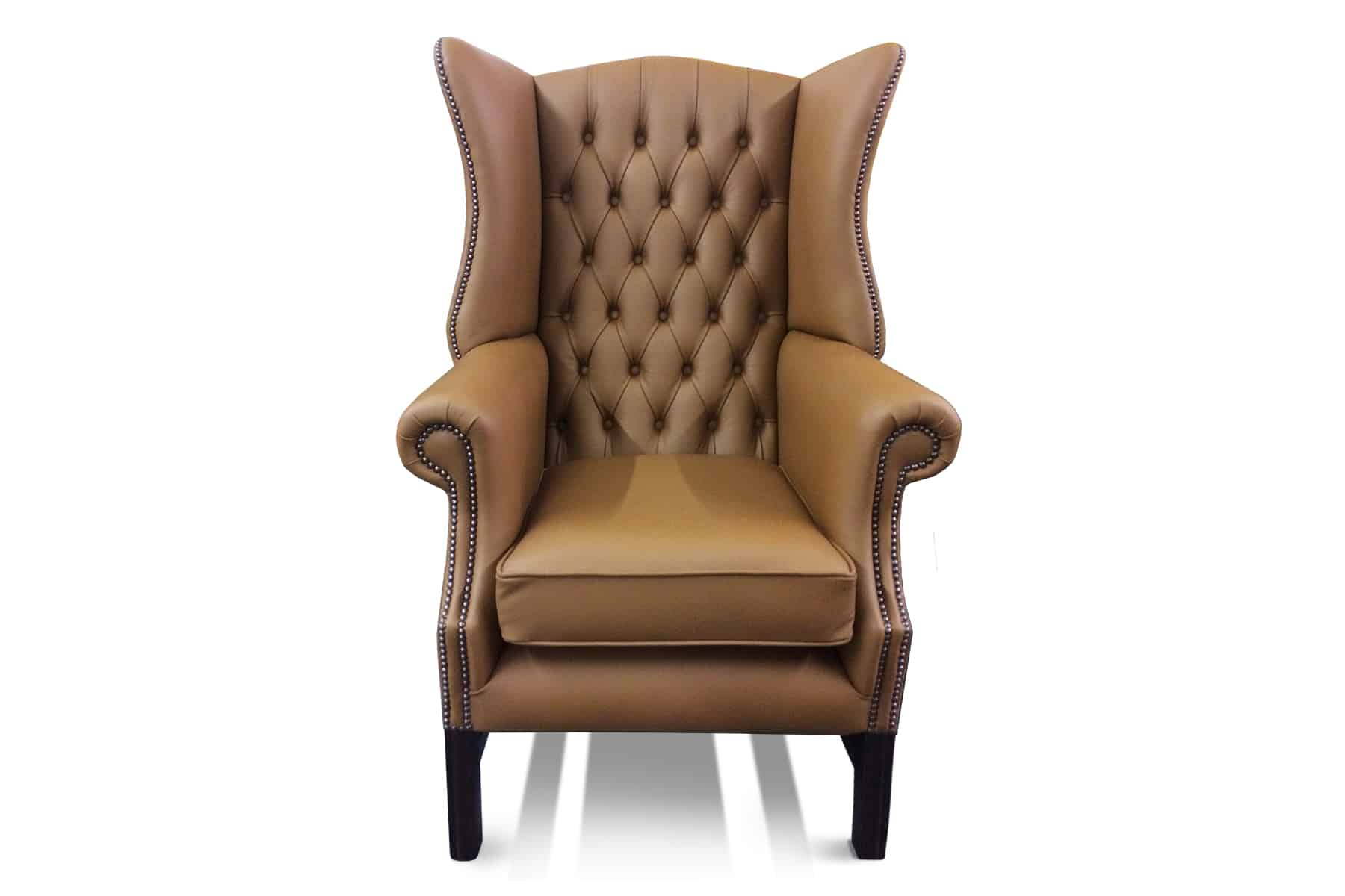 The Duke Leather Wing armchair is a plush, oversized high back chair that can be made either in fabric or leather.