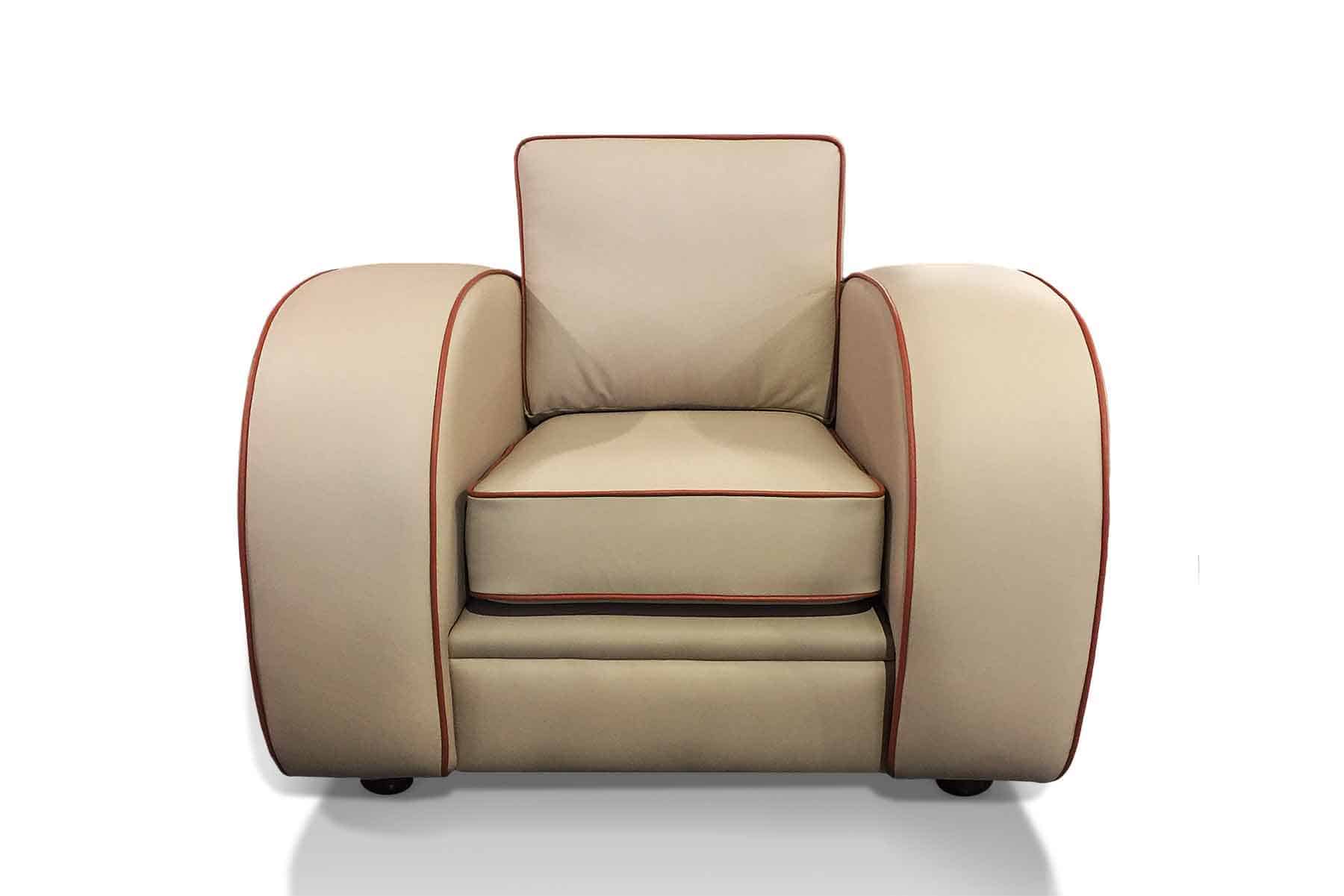 The Gatsby is instantly recognisable as a classic Art Deco sofa and one of our most popular models. Although made to a standard specification, we can alter the sizes as required, even reducing the width of the chair arms. The piping can be made with contrasting materials at a small extra charge.