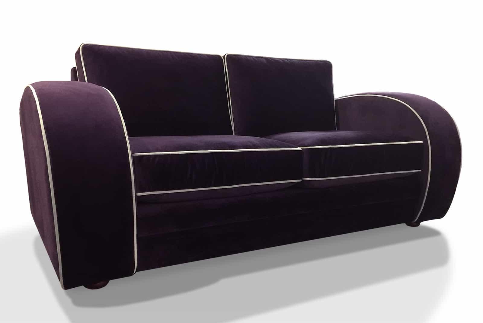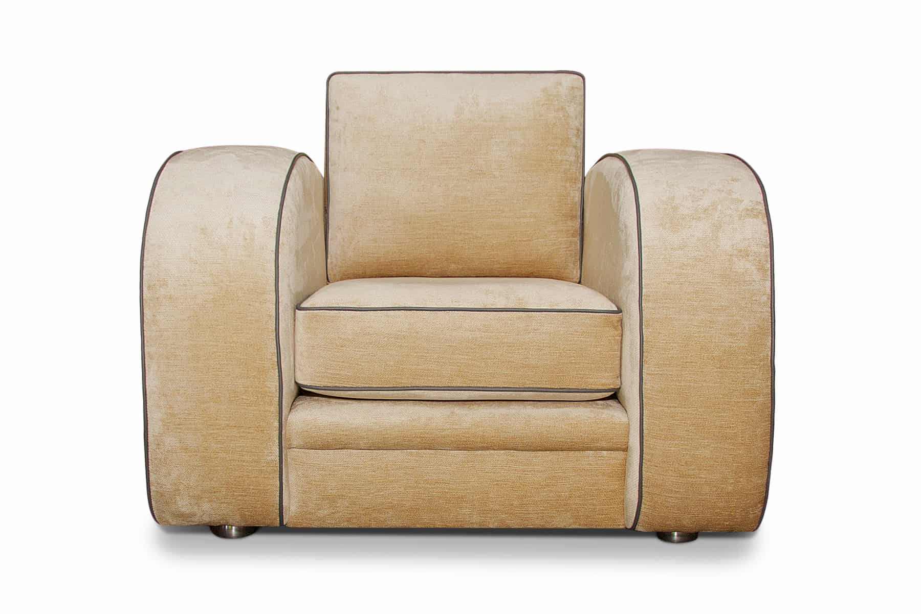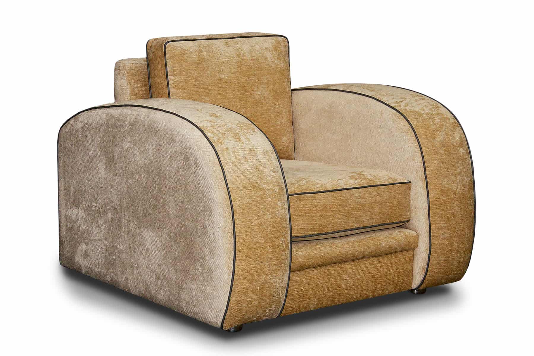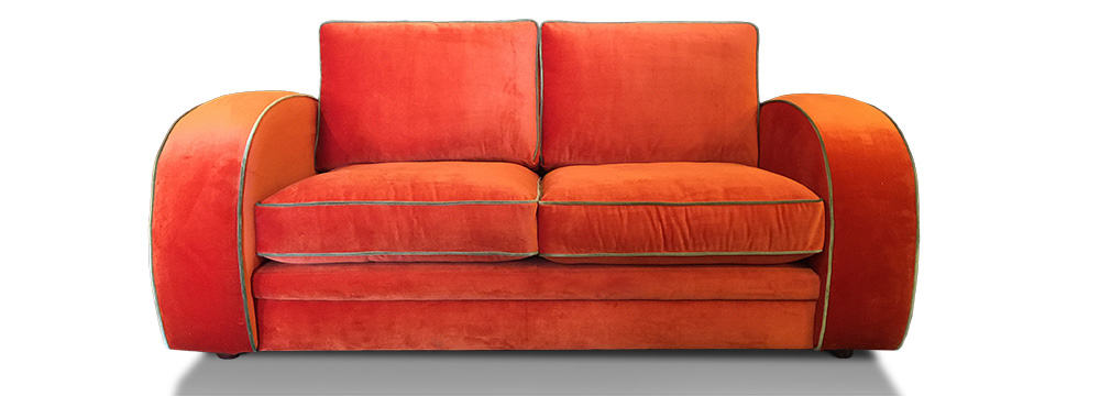 The Gatsby is instantly recognisable as an Art Deco classic sofa and one of our most popular models. Although made to a standard specification, we can alter the sizes as required, even reducing the width of the chair arms. The piping can be made with contrasting materials at a small extra charge.