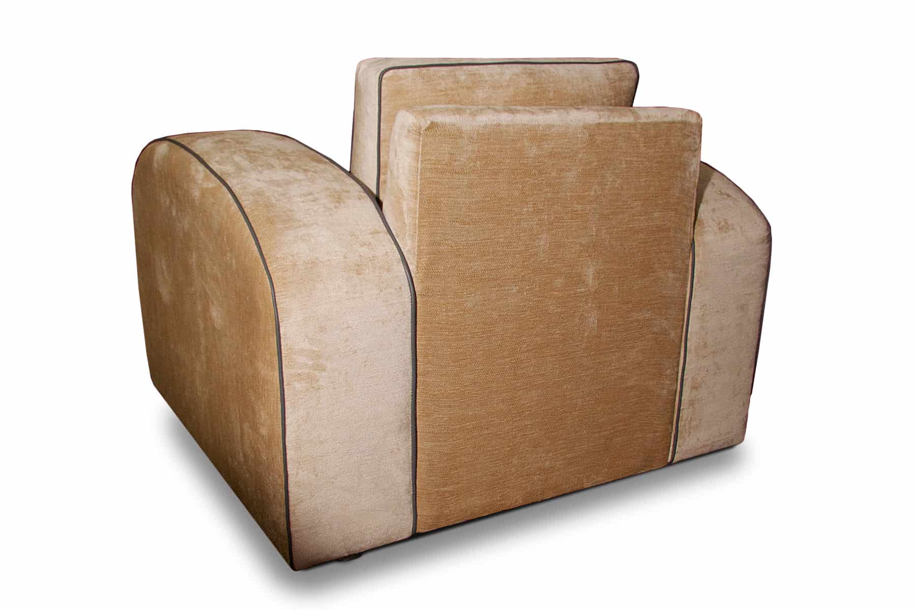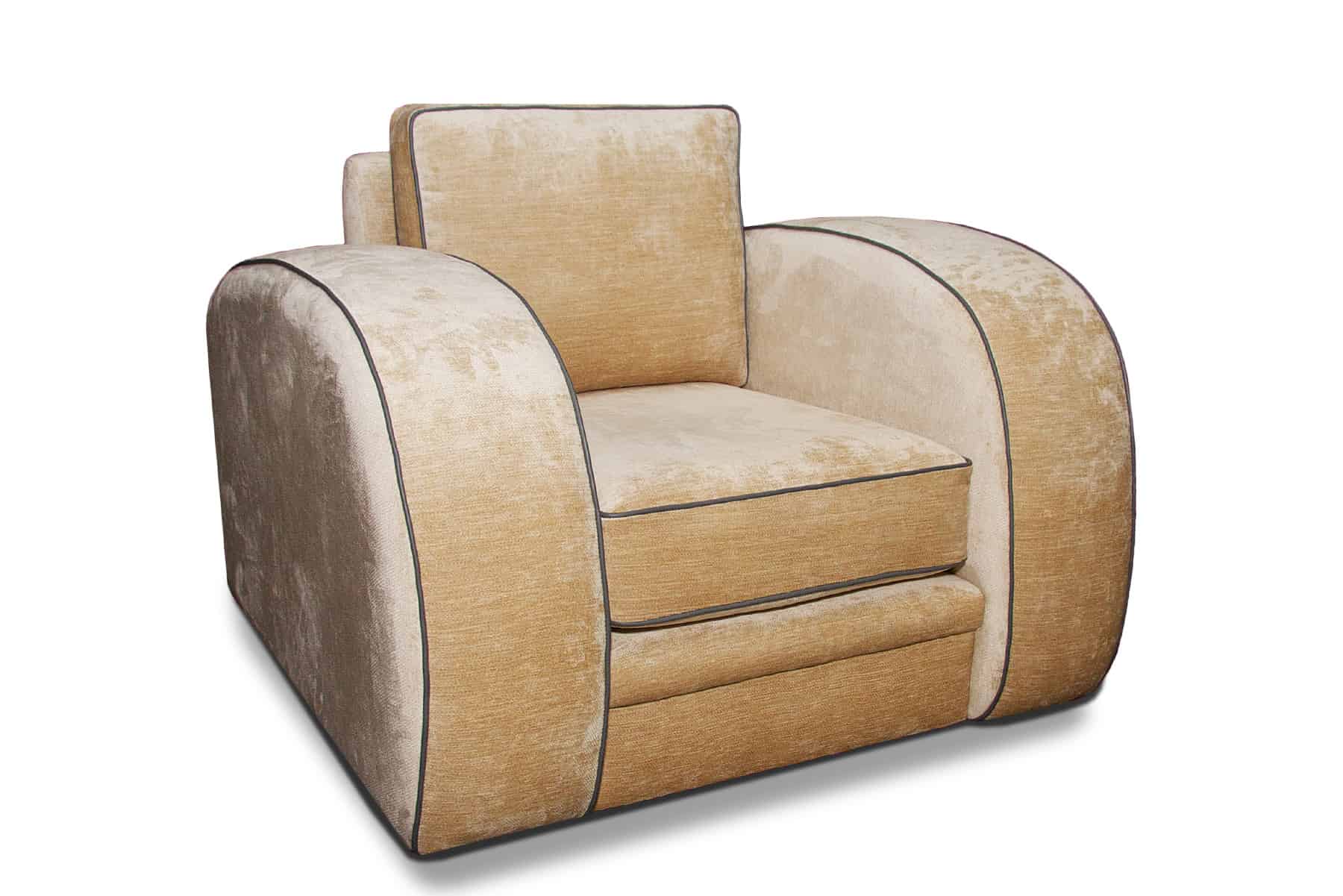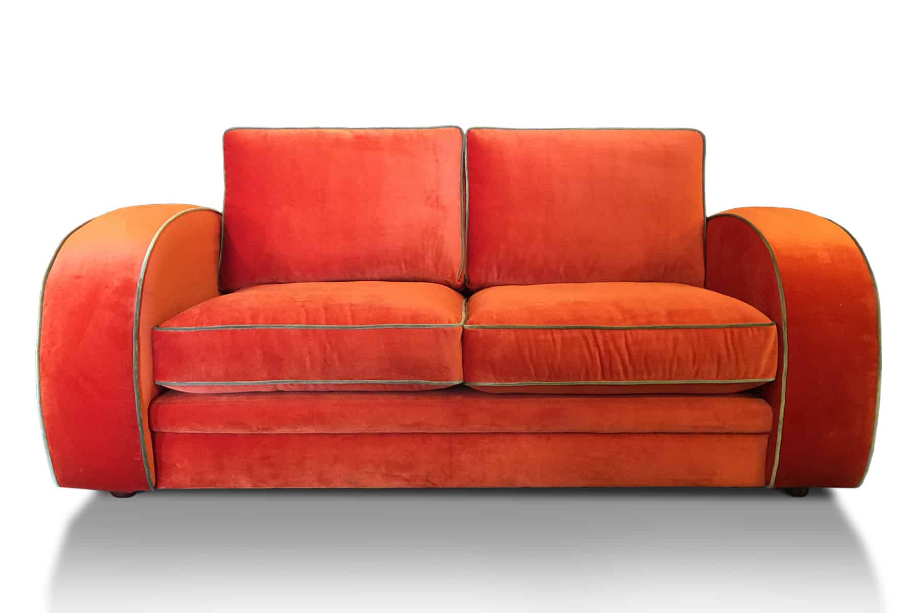 The Gatsby is instantly recognisable as an Art Deco classic sofa and one of our most popular models. Although made to a standard specification, we can alter the sizes as required, even reducing the width of the chair arms. The piping can be made with contrasting materials at a small extra charge.