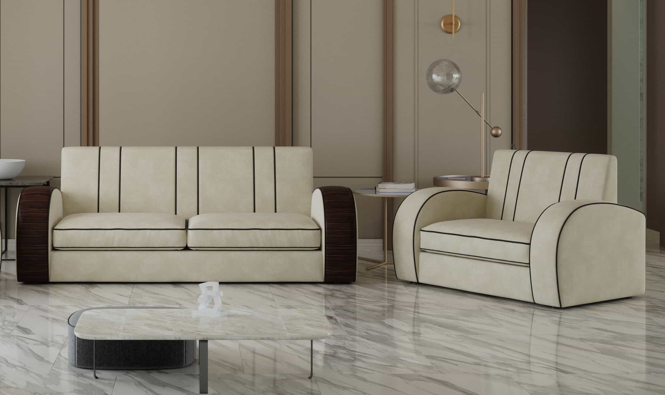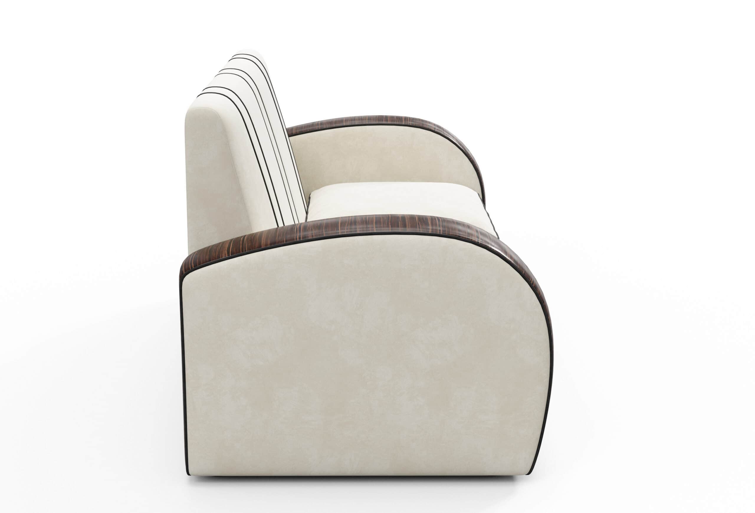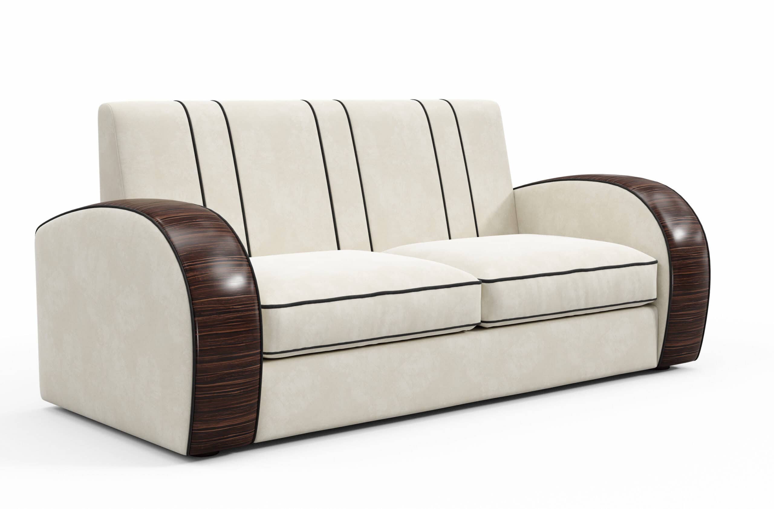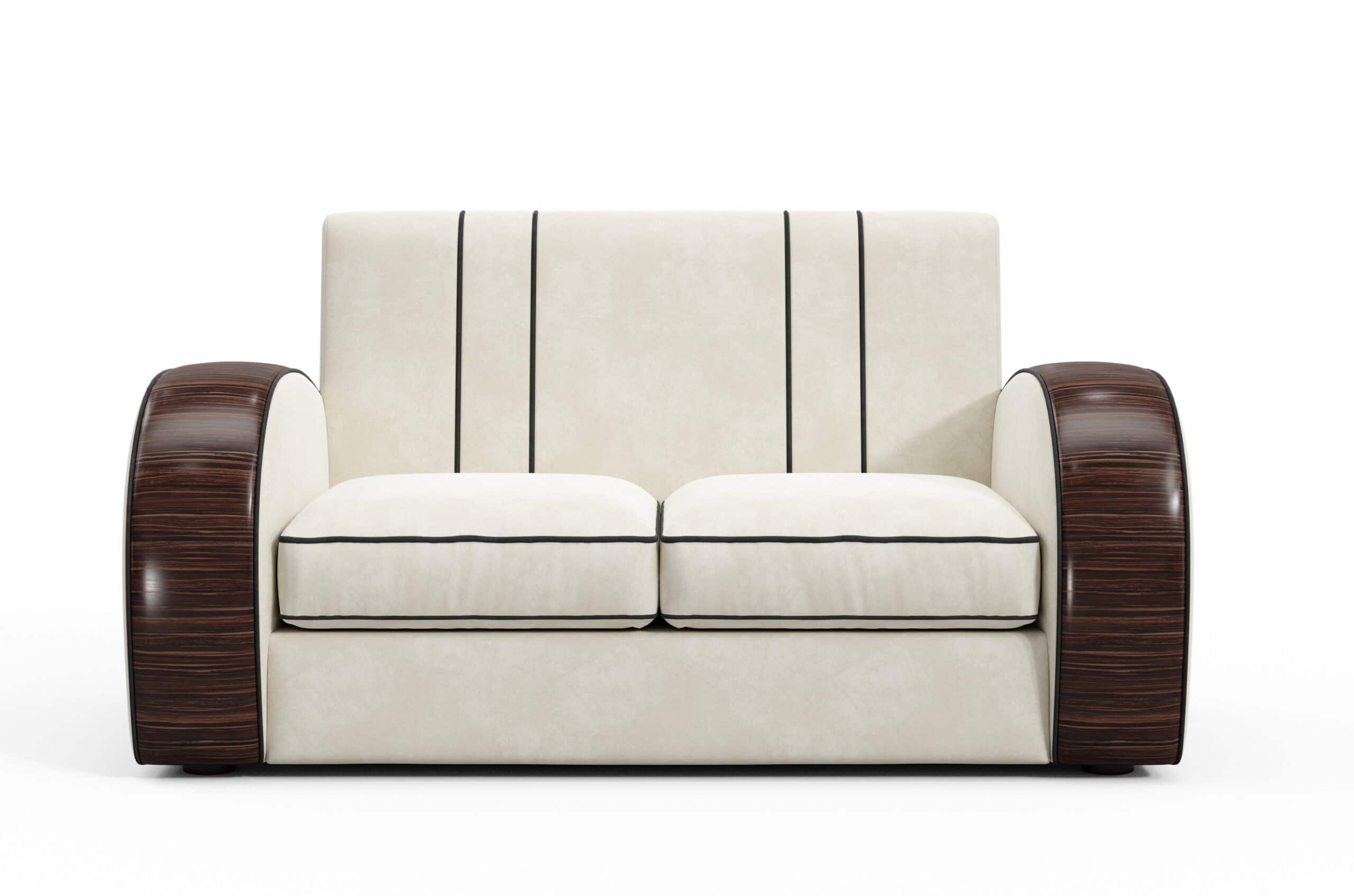 Our new ‘Retro Wood Art Deco Sofa’ captures the essence of classic Art Deco design, blending straight trim with gracefully curved veneered arms. This thoughtful combination of elements offers a balanced and refined adaptation of traditional period motifs, making it a versatile addition to any living space. The sofa brings together timeless design features in a way that feels both familiar and fresh, adding subtle character and style to your home.